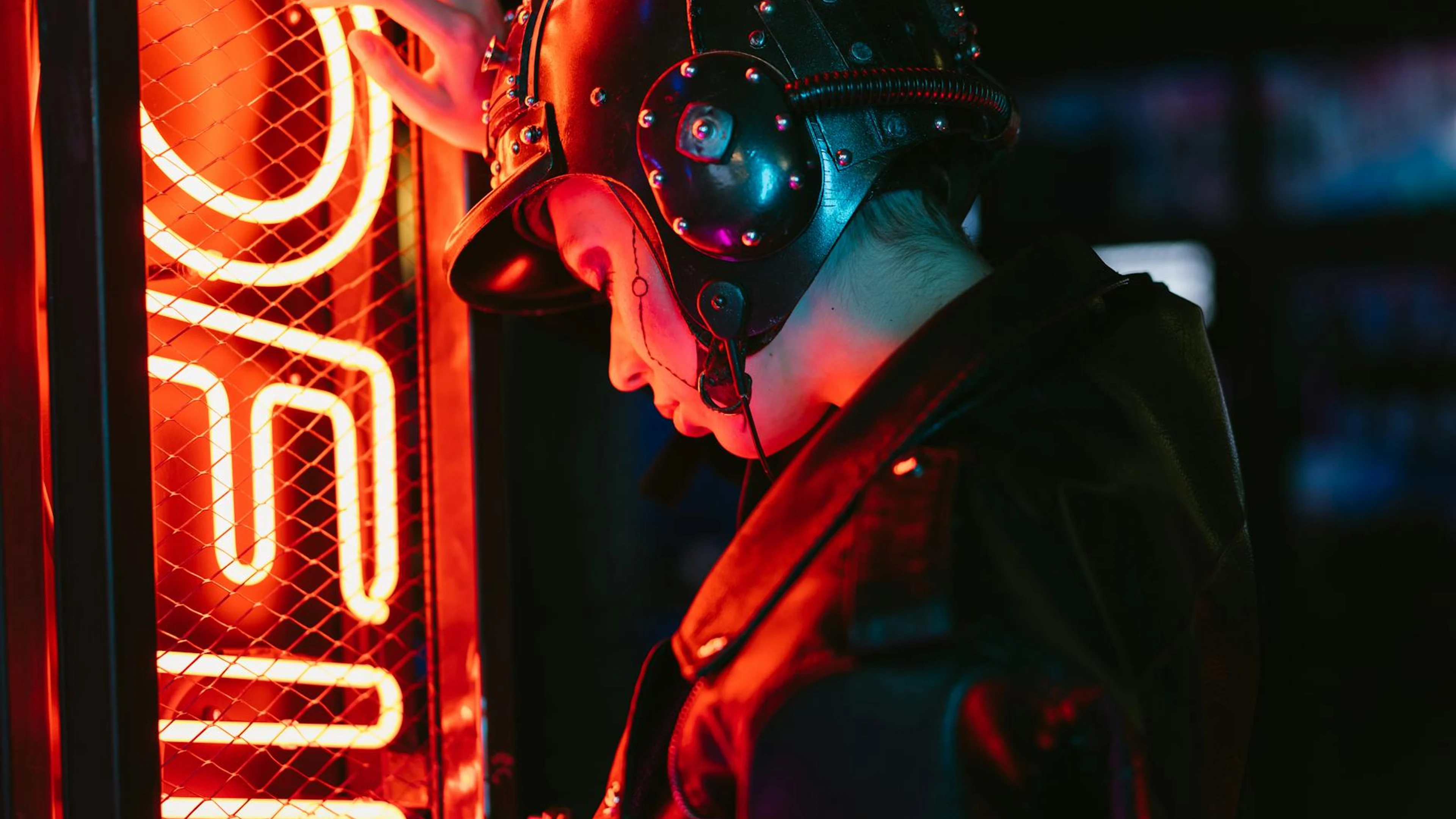 Get this stunning A woman in cyberpunk attire stands by vibrant neon lights, creating a futuristic wallpaper in 4K Ultra HD quality. 3840x2160 gaming wallpaper available for free download.
