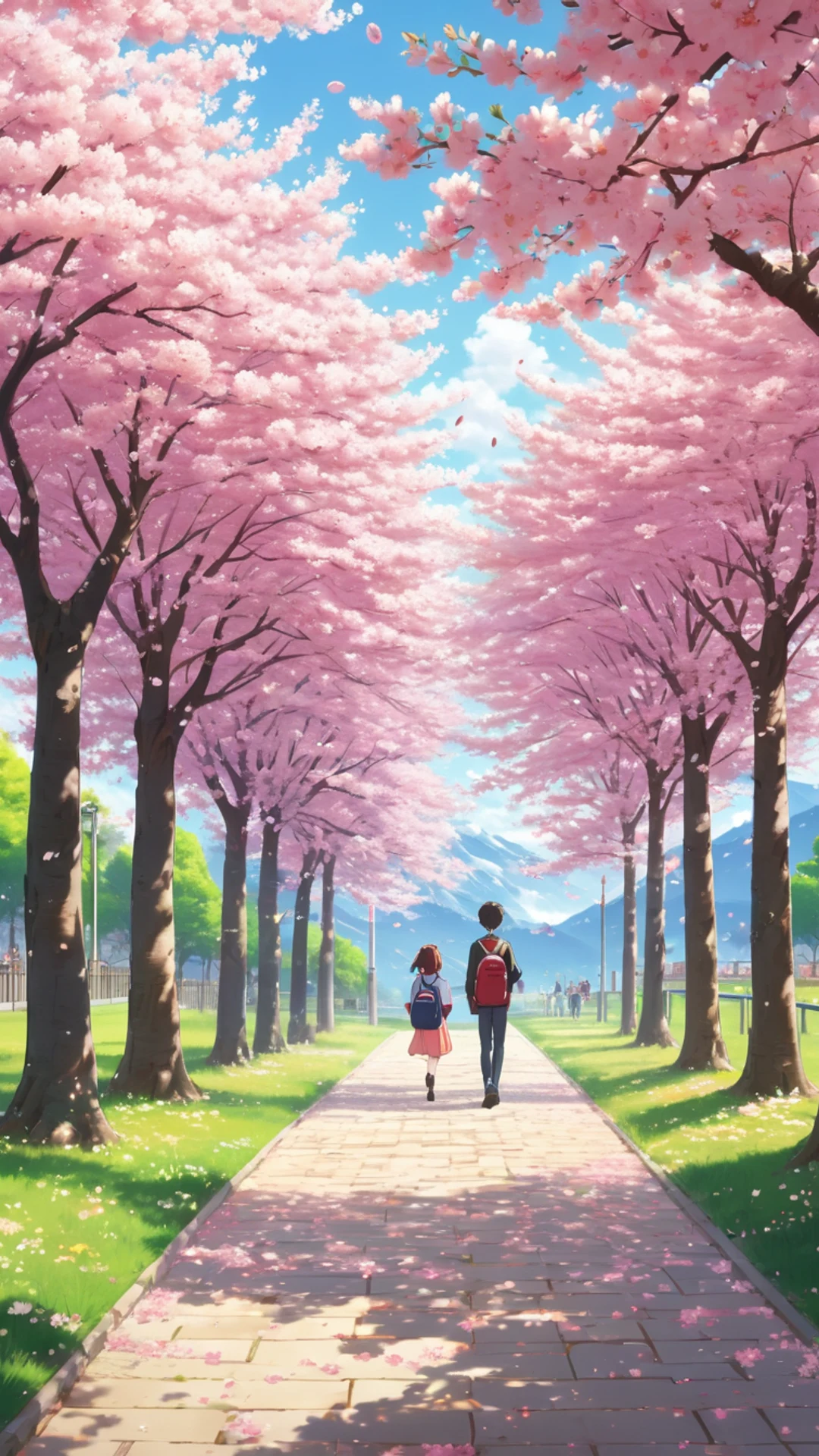 Free Anime Cherry Blossom School wallpaper in phone resolution (1080x1920). Beautiful anime background for your screen. No signup required.