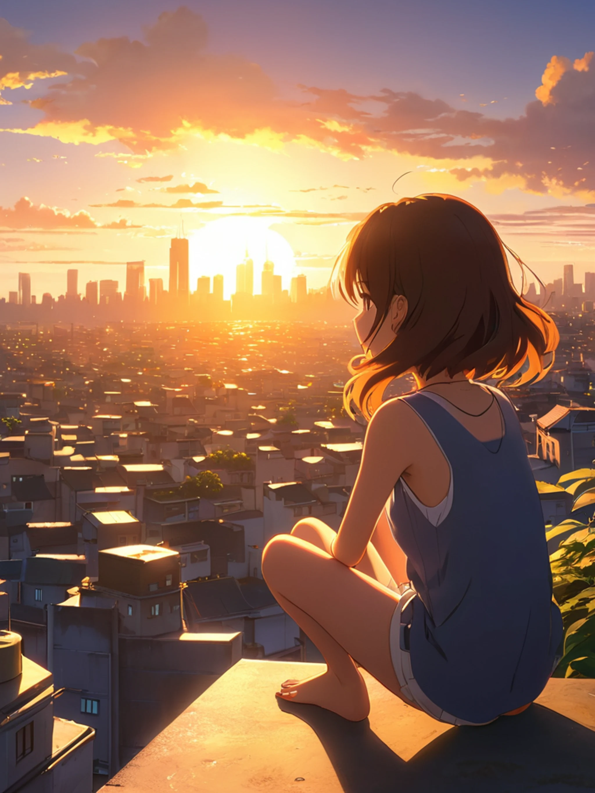 Download Anime Girl Watching Sunset City wallpaper for free. 2048x2732 tablet resolution, perfect for your phone. High quality anime wallpaper.