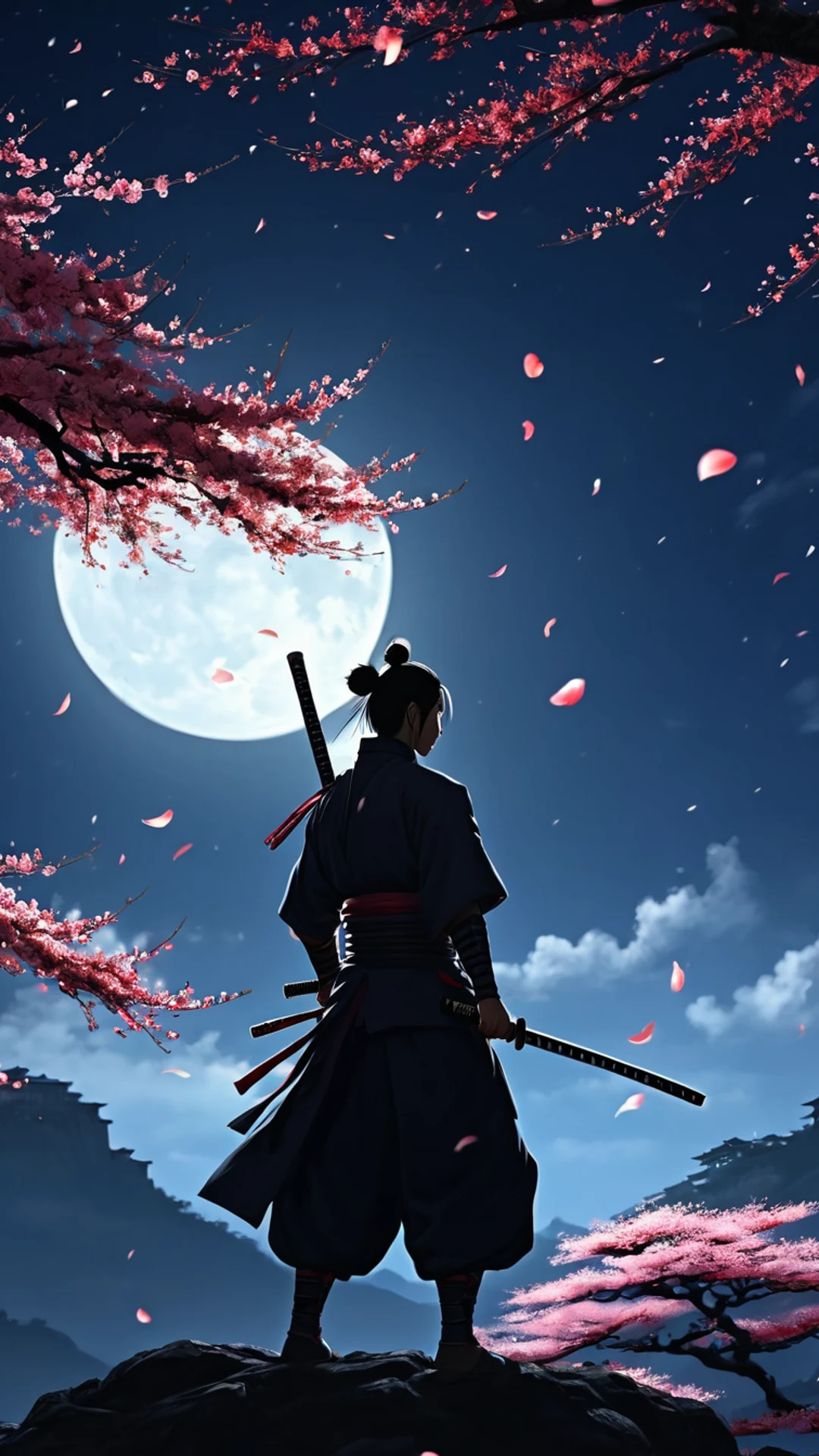 Free Anime Samurai Under Moon wallpaper in phone resolution (1080x1920). Beautiful anime background for your screen. No signup required.