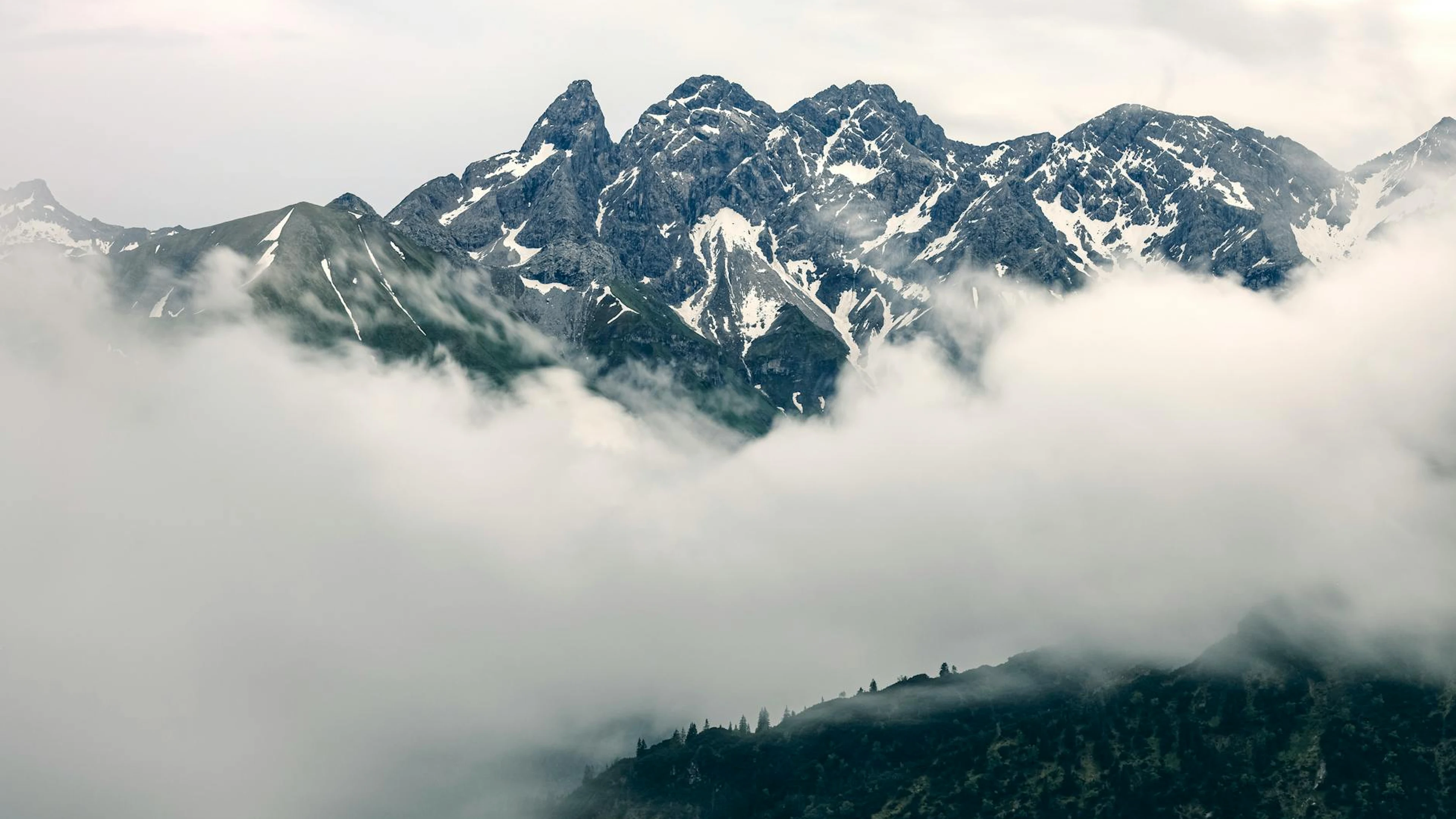 Download Breathtaking view of snow-capped mountains and misty clouds in Oberstdorf, Germa wallpaper for free. 3840x2160 4K Ultra HD resolution, perfect for your desktop. High quality mountain wallpaper.