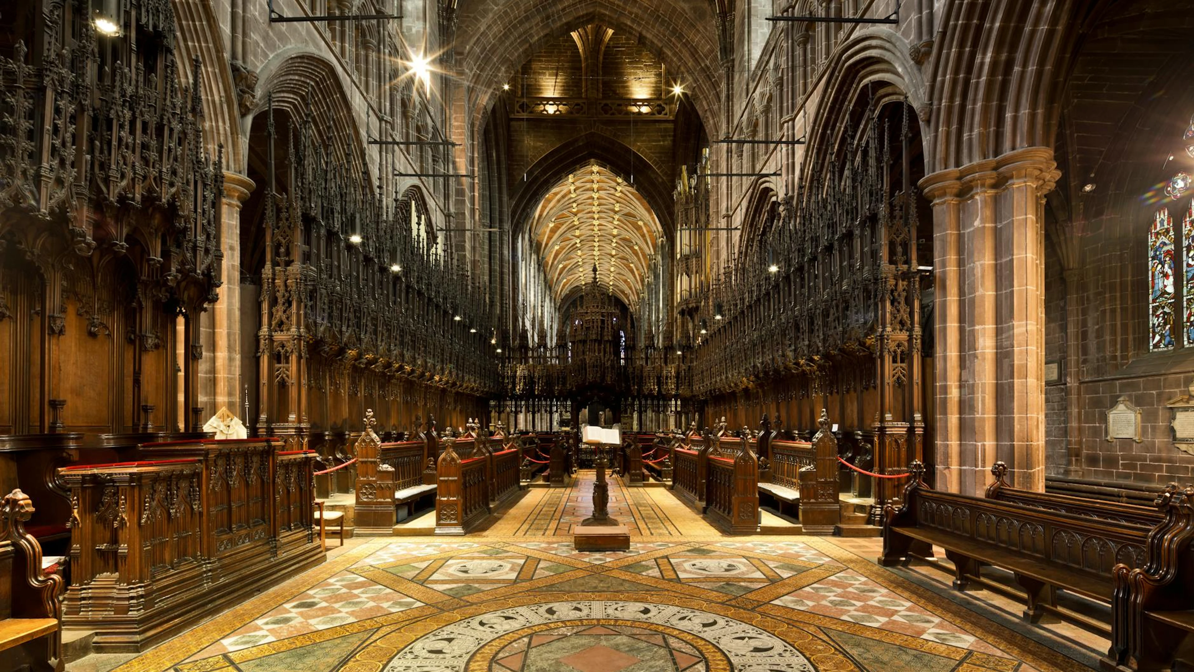 Download Capture of Chester Cathedral's intricate Gothic architecture and historic charm. wallpaper for free. 3840x2160 4K Ultra HD resolution, perfect for your desktop. High quality architecture wallpaper.