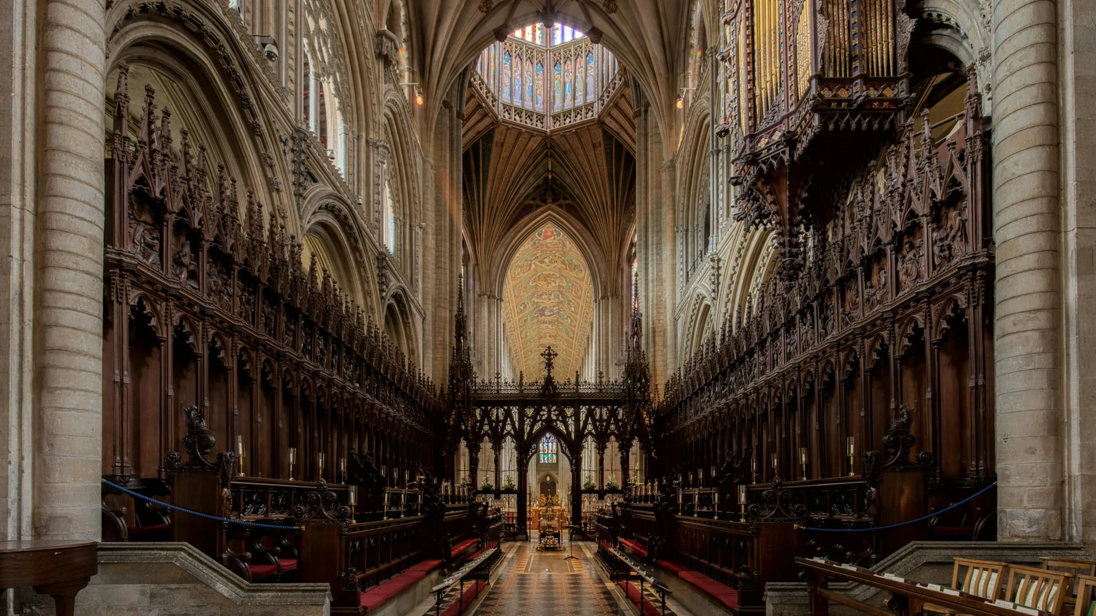 Capture of the stunning architectural interior of Ely Cathedral showcasing intri