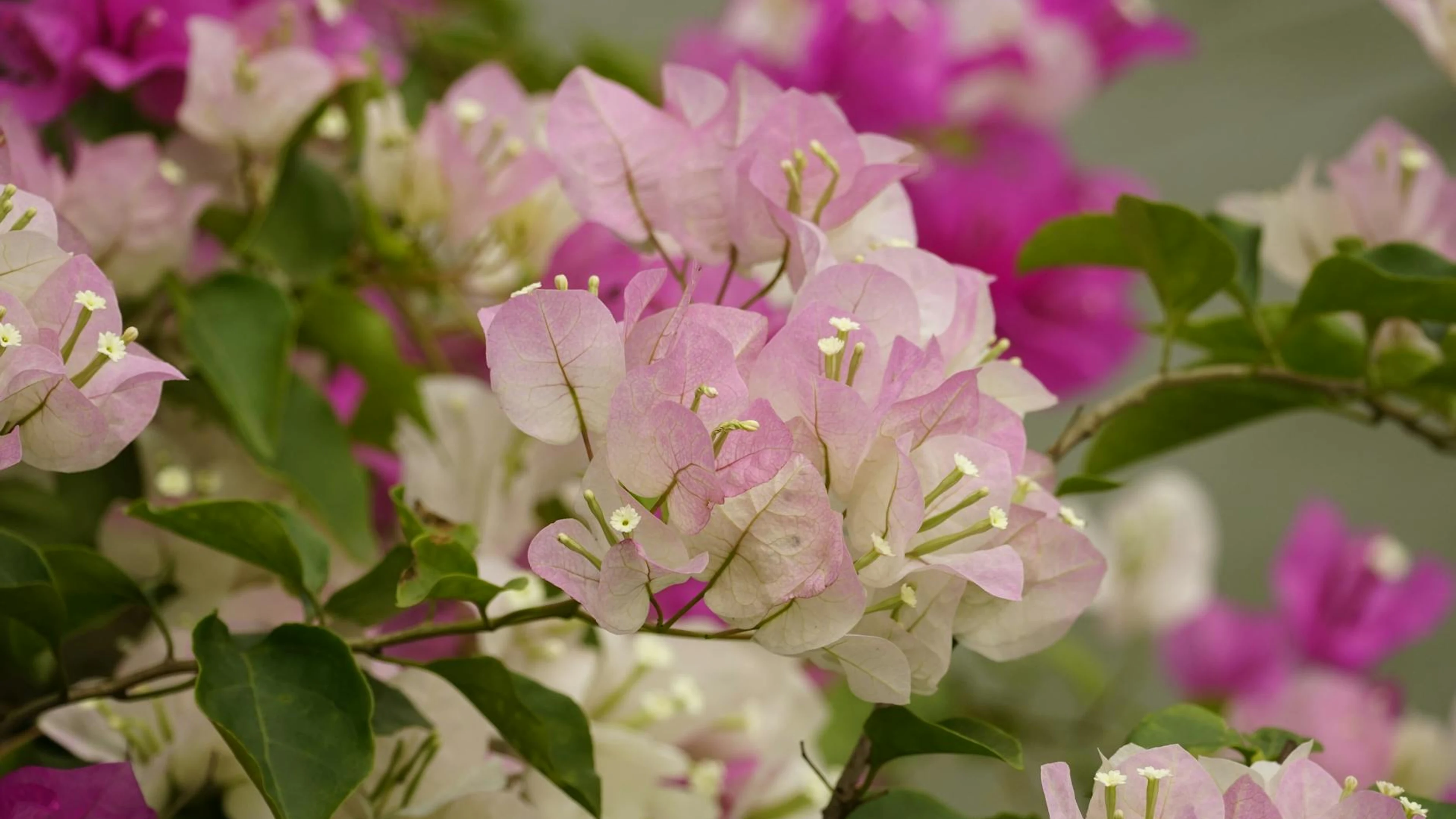 Close-up of colorful bougainvillea flowers in vibrant pinks and whites, capturin - free 4K Ultra HD flowers wallpaper for desktop