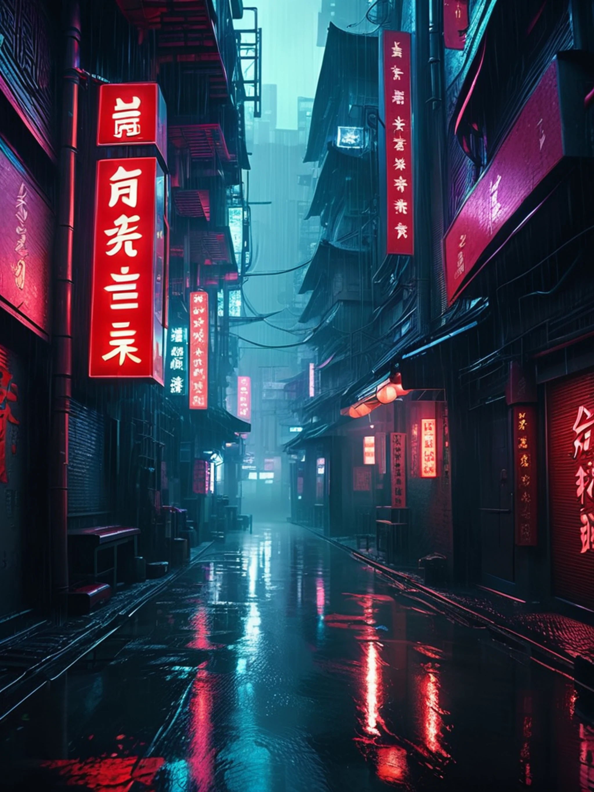 Dark Rainy Cyberpunk Alley