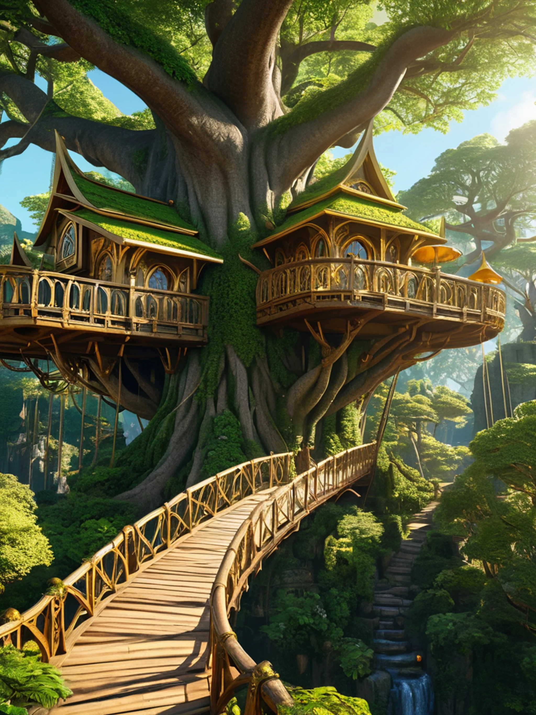Elven City in Trees - free Tablet fantasy wallpaper for phone