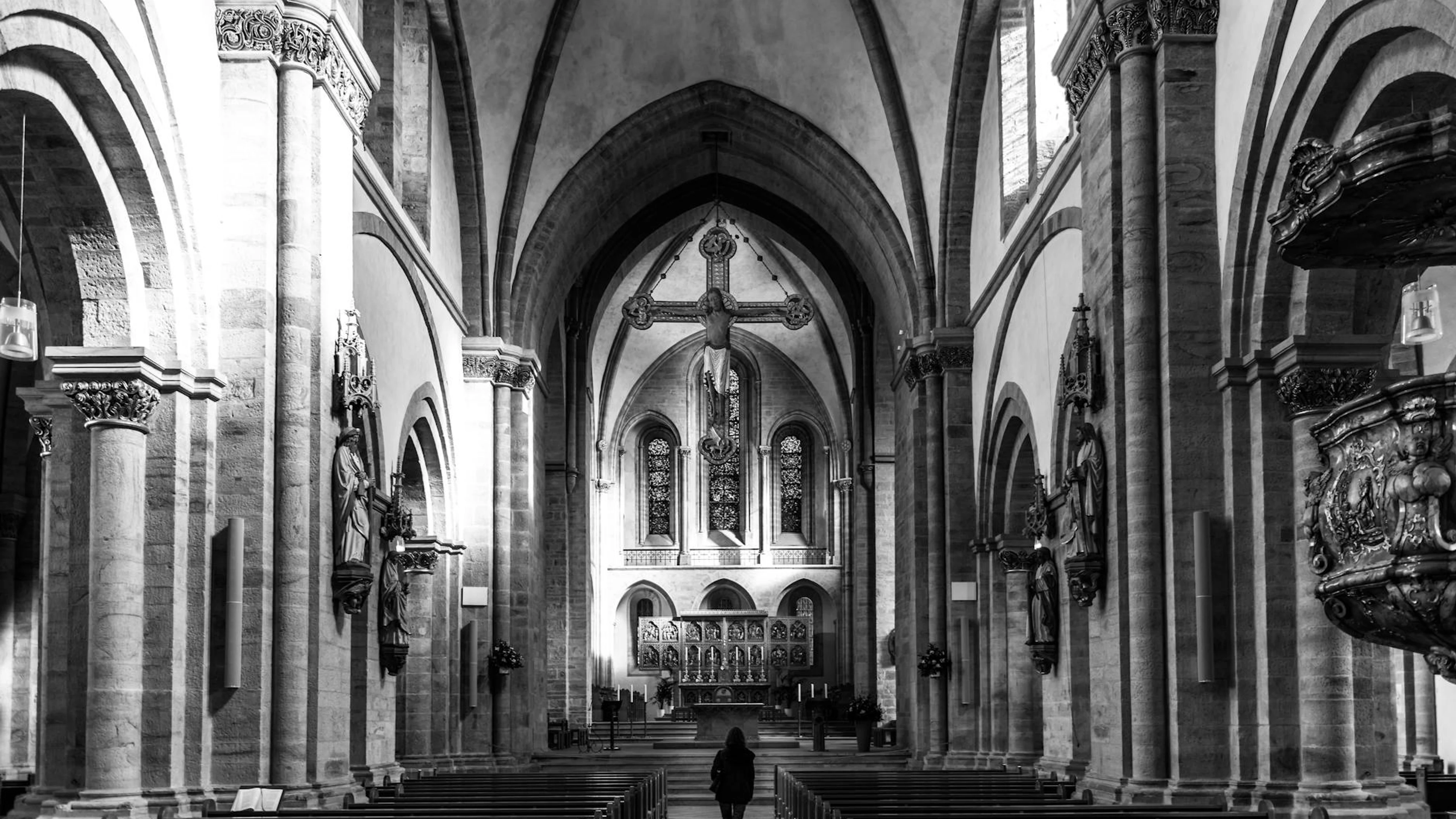 Free Interior view of St. Peter's Cathedral, Osnabrück, showcasing arches and altar. wallpaper in 4K Ultra HD resolution (3840x2160). Beautiful architecture background for your screen. No signup required.