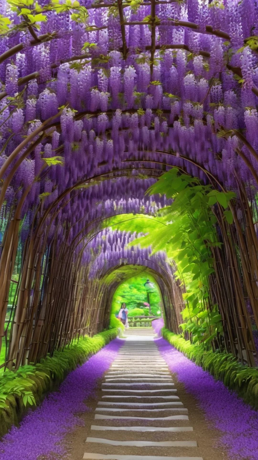 Download Japanese Wisteria Tunnel wallpaper for free. 1080x1920 phone resolution, perfect for your phone. High quality flowers wallpaper.