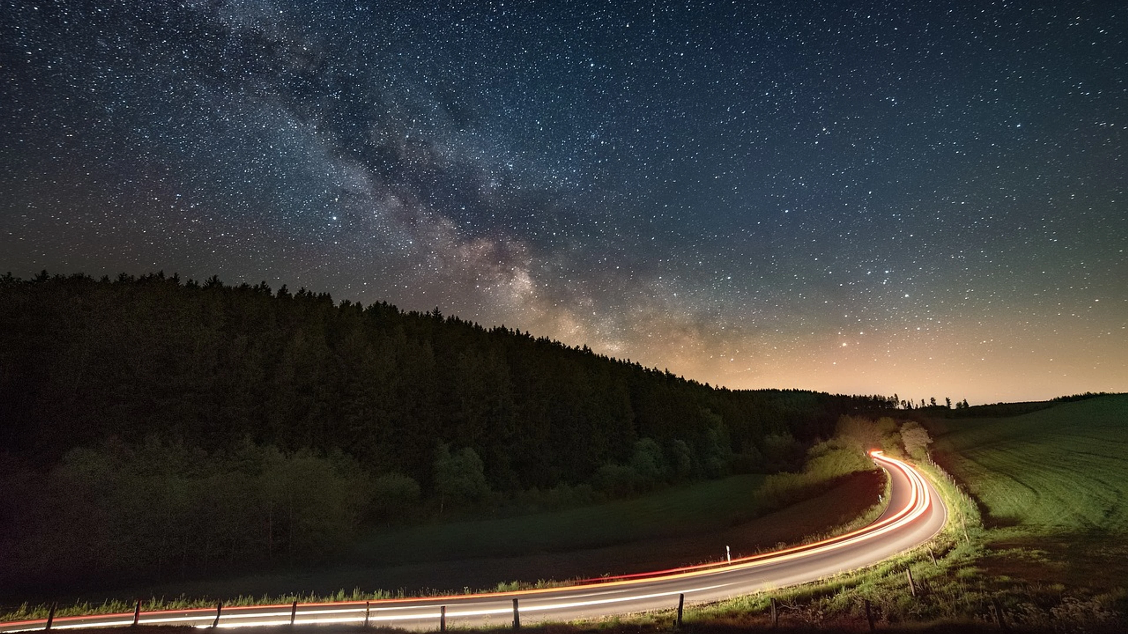 Free Night milky way road wallpaper in 4K Ultra HD resolution (3840x2160). Beautiful space background for your screen. No signup required.