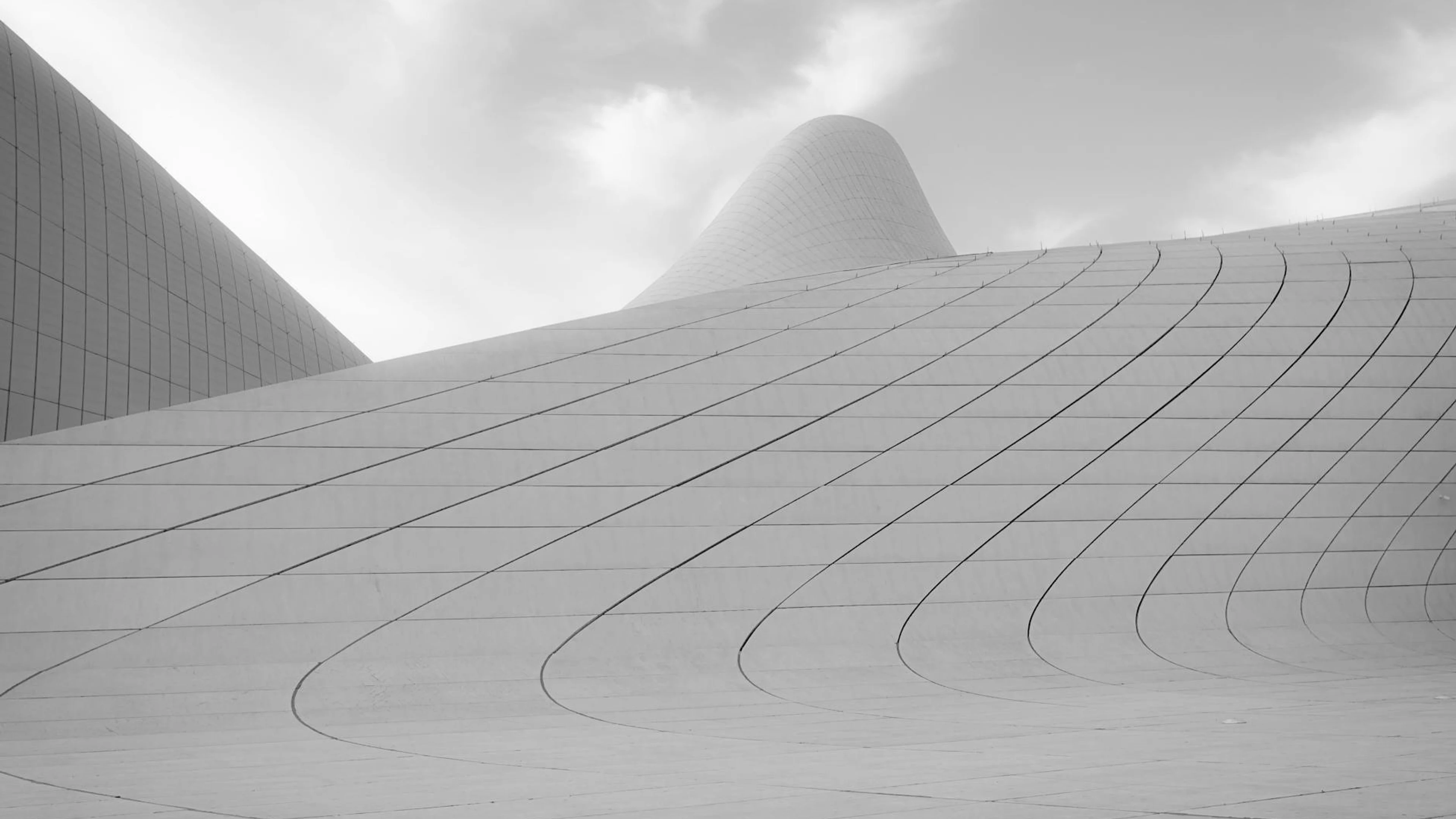 Download Sleek curves of Heydar Aliyev Center's exterior showcasing modern architectural wallpaper for free. 3840x2160 4K Ultra HD resolution, perfect for your desktop. High quality minimal wallpaper.