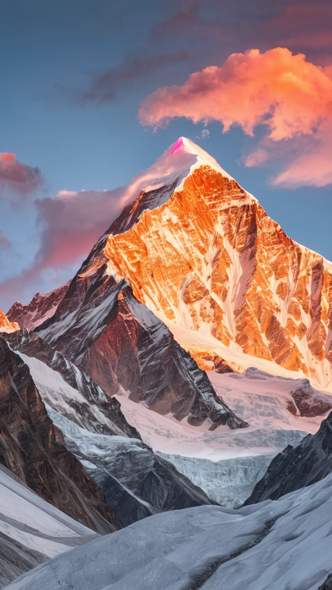 Download Snow Capped Peaks Sunrise wallpaper for free. 1080x1920 phone resolution, perfect for your phone. High quality mountain wallpaper.