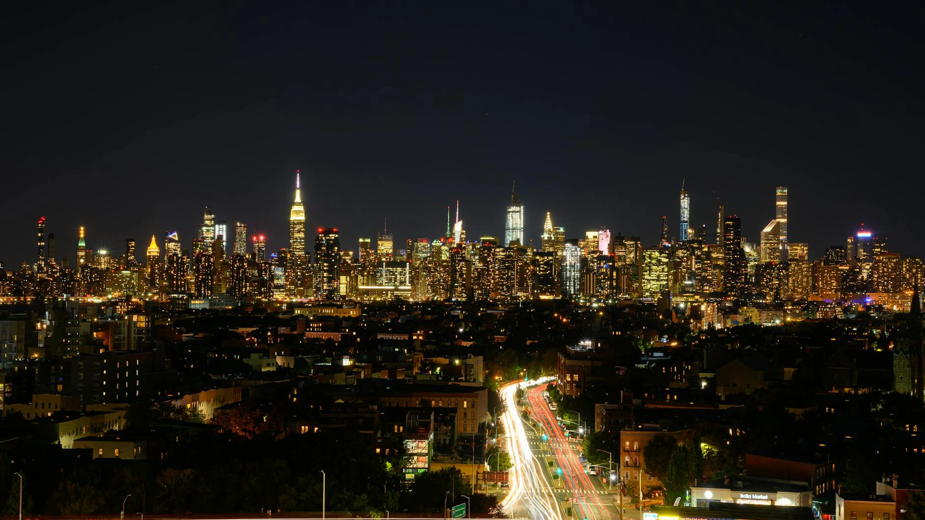 Download Stunning nighttime view of New York City skyline with vibrant lights and long ex wallpaper for free. 3840x2160 4K Ultra HD resolution, perfect for your desktop. High quality city wallpaper.