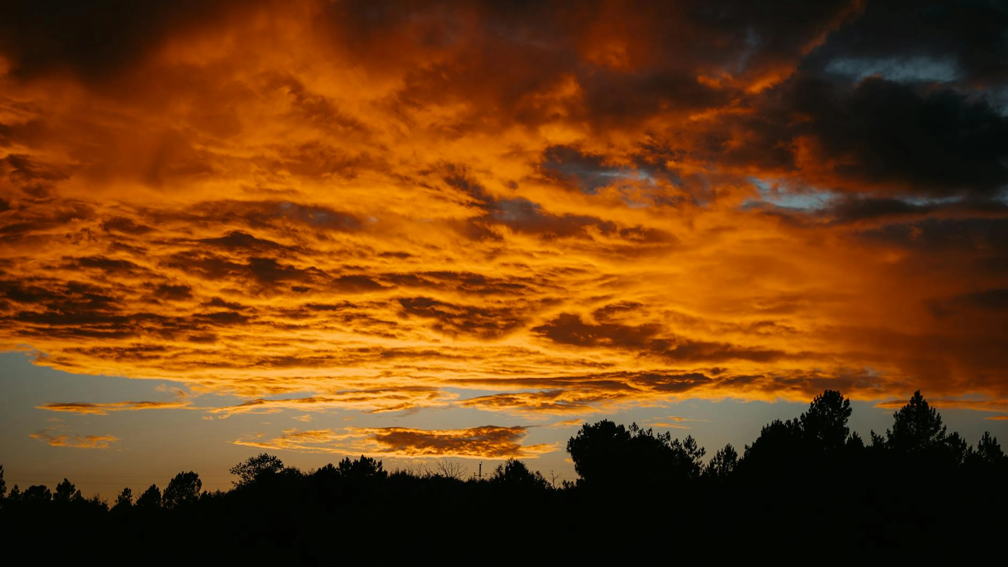 Free Stunning sunset with vivid orange clouds and tree silhouettes creating a dramati wallpaper in 4K Ultra HD resolution (3840x2160). Beautiful sunset background for your screen. No signup required.