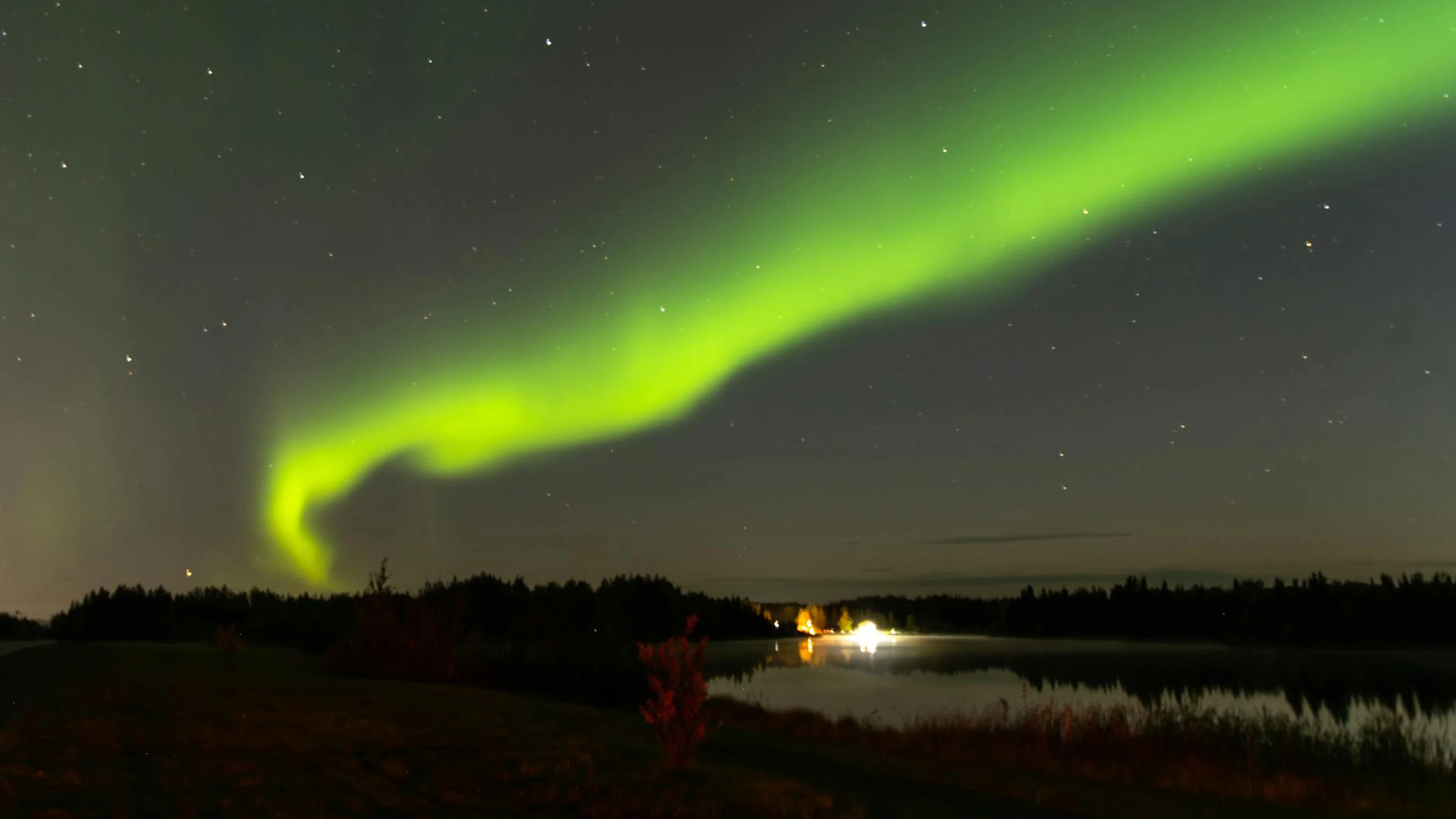 Vibrant Northern Lights illuminating a serene Alaskan night sky over a tranquil